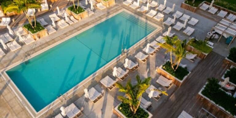 Our work at 1HOTEL also included a comprehensive 60,000-square-foot pool deck restoration, featuring a new structural pool system, expansive deck surfaces, luxury cabanas, integrated lighting, and full-service wet bar and towel facilities, transforming the deck into a vibrant, resort-style destination.